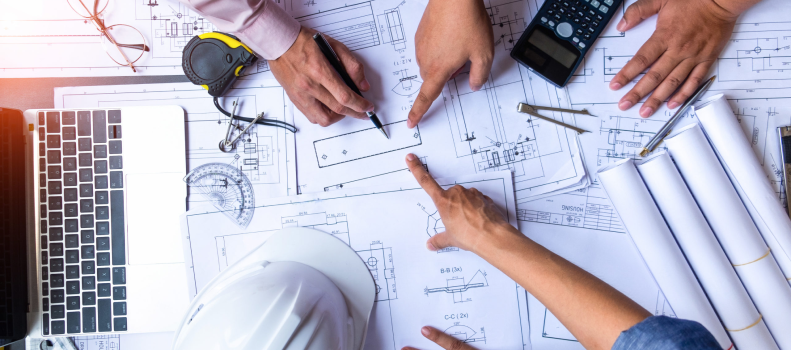Architects and designers work on creating the plans and drawings for construction